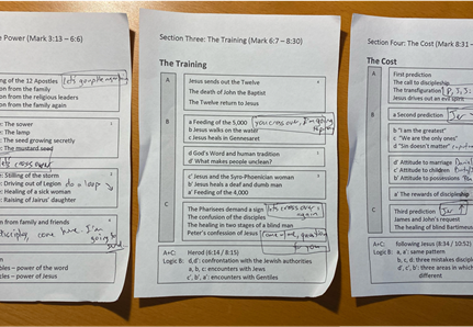 Once you’ve nailed the lines, try to memorise as much of the structure as you can. As you’ll notice, lots of the time, a subsection will start off with a question or objection from the disciples or the Pharisees to which Jesus then responds. This is great, because it means you don’t need to know which scene is next.